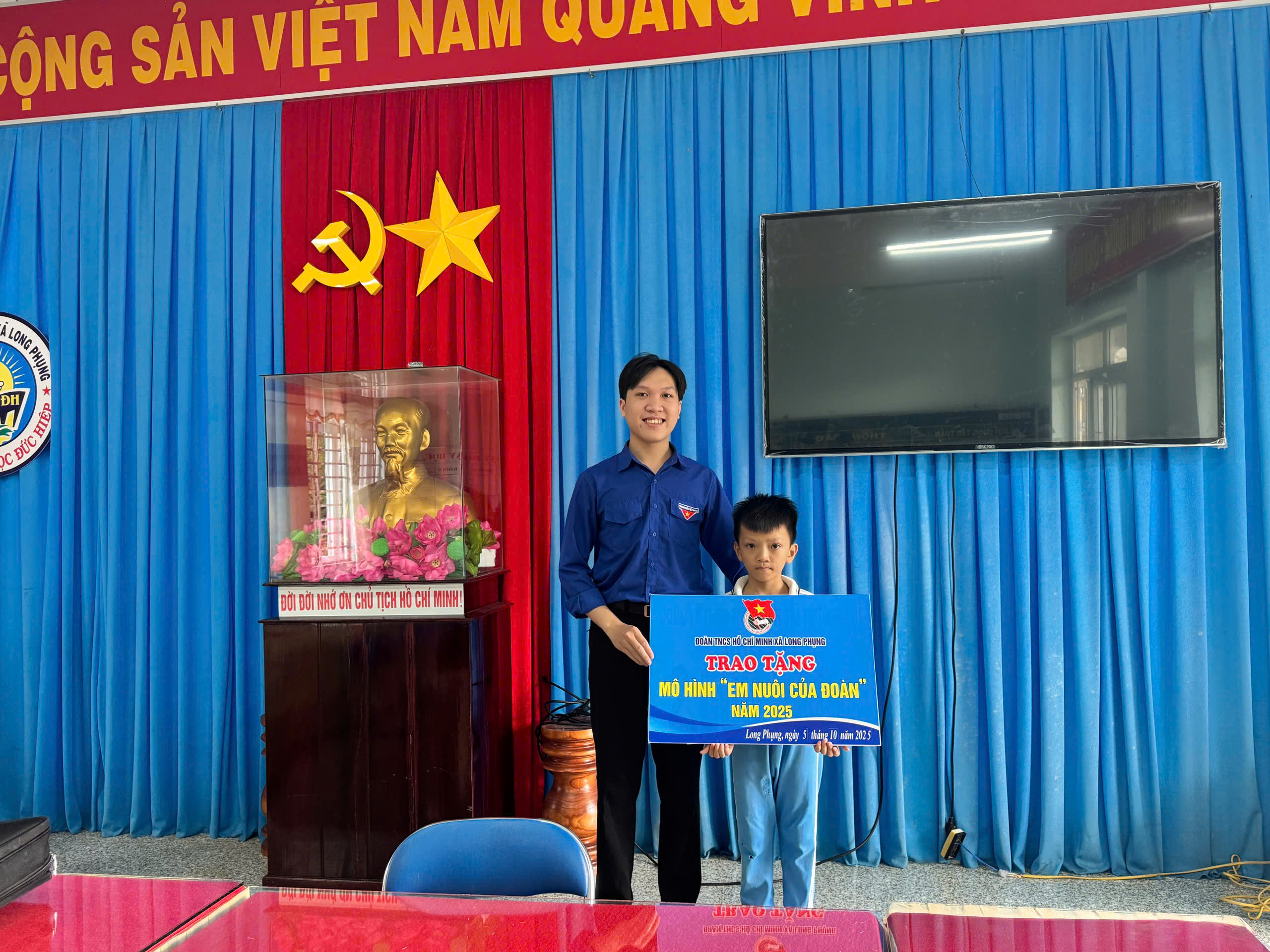 Sáng nay, ngày 4/11/2025 đại diện Ban Chấp hành Đoàn xã Long Phụng do ông Trần Quang Tiến – BCH Đoàn xã – đã đến Trường Tiểu học Đức Hiệp để trao tặng và nhận đỡ đầu em Võ Ngọc Phát, học sinh lớp 3A, trong khuôn khổ mô hình “Em nuôi của Đoàn”.