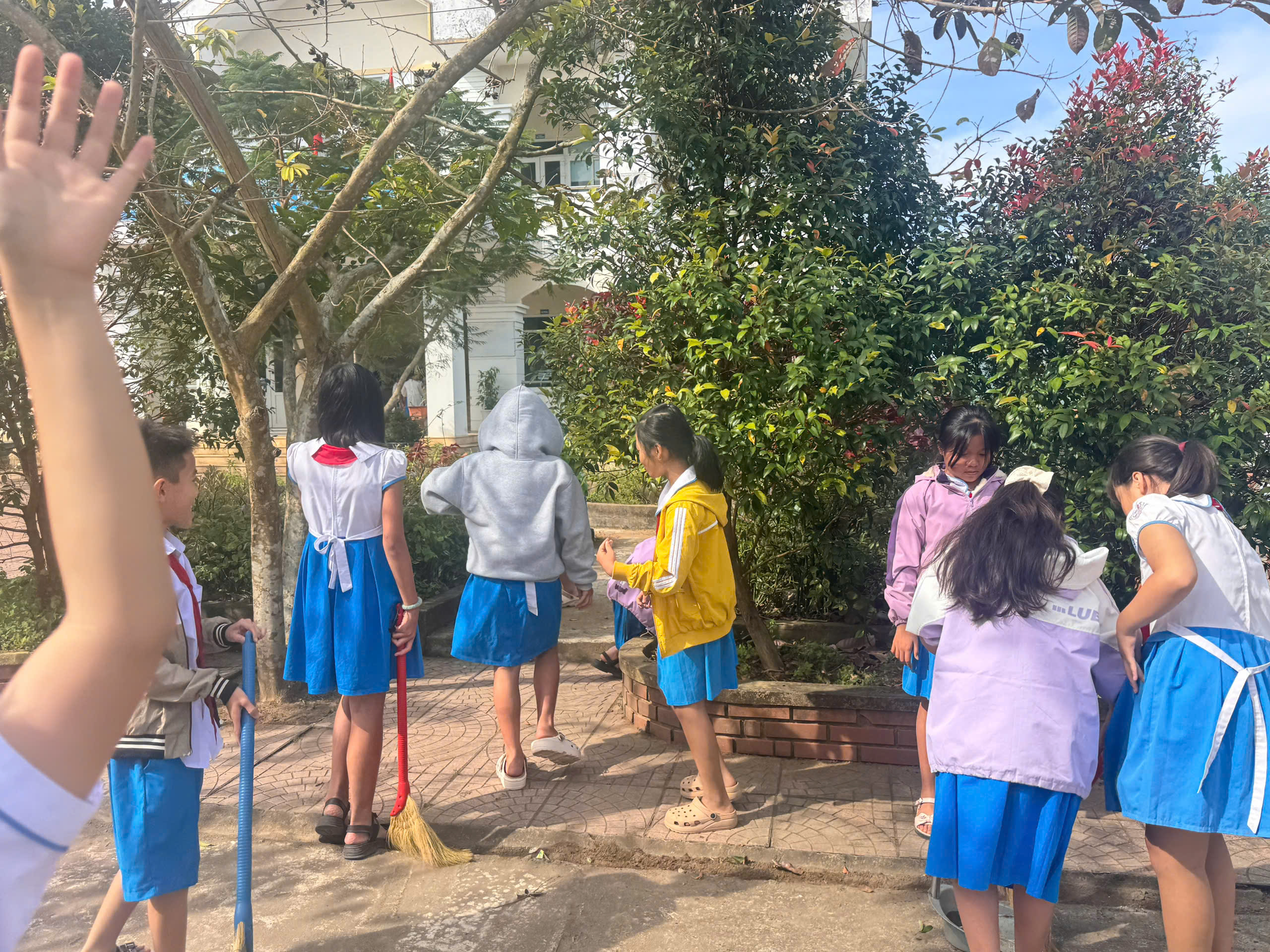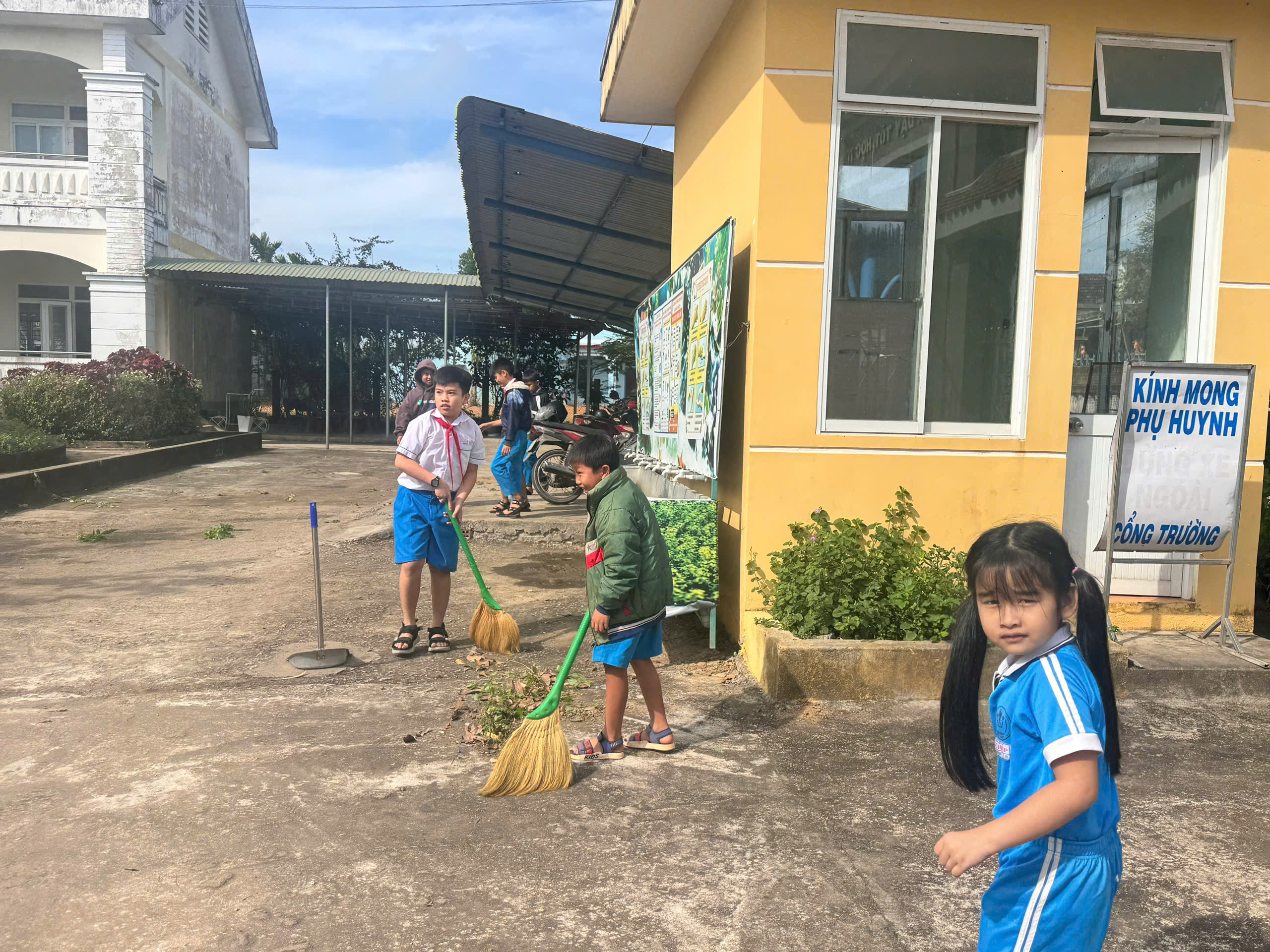 Từ sân trường, hành lang đến từng lớp học đều được lau dọn gọn gàng, sạch sẽ. Những đôi tay nhỏ bé nhưng đầy nhiệt tình của các em học sinh đã cùng thầy cô chăm chút từng góc lớp, bồn hoa, hàng cây, tạo nên diện mạo tươi mới cho ngôi trường thân yêu.