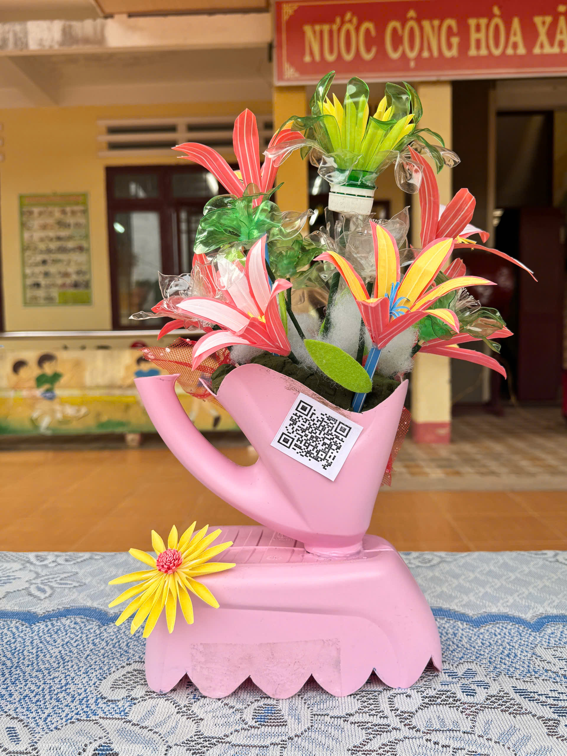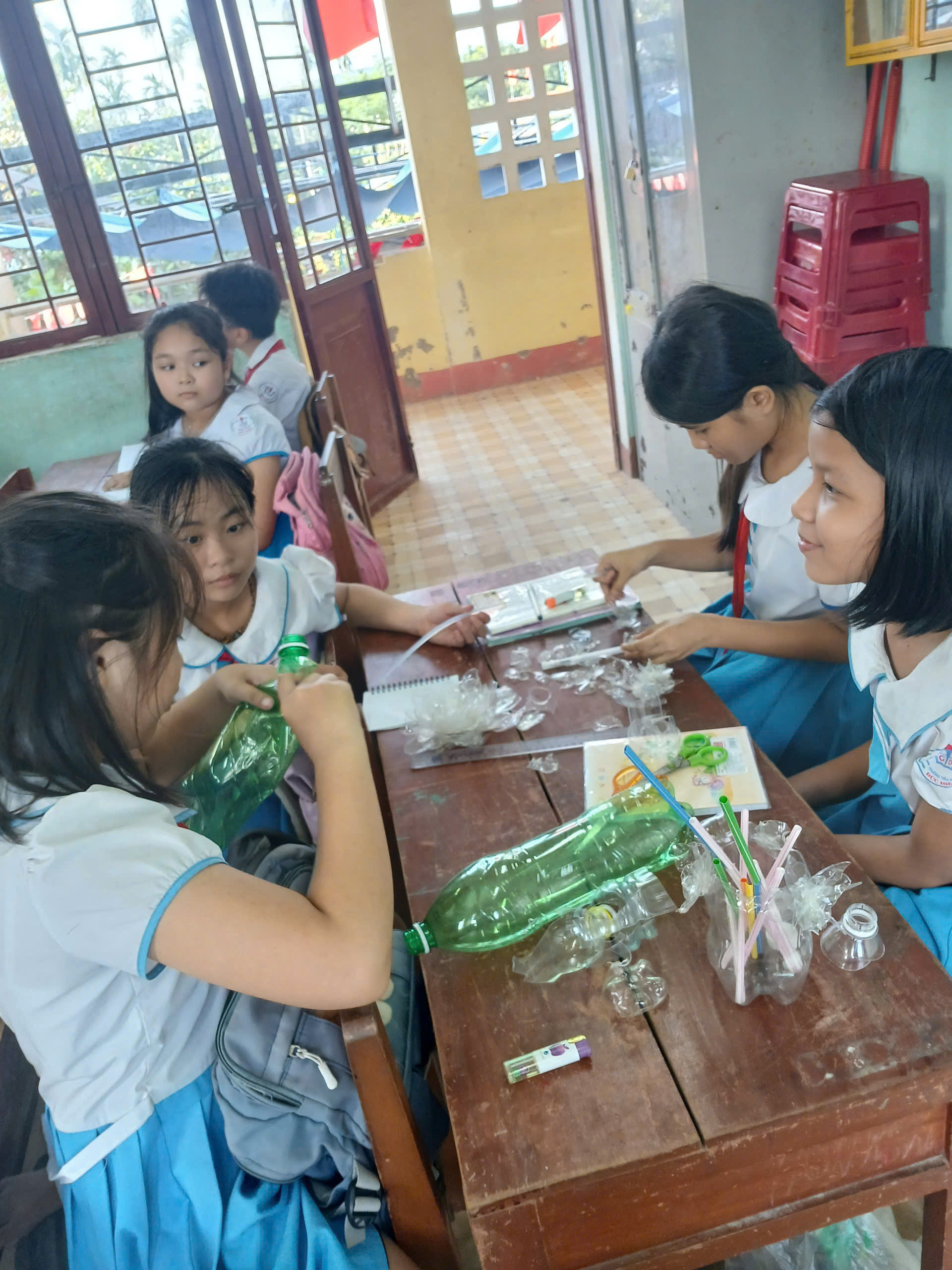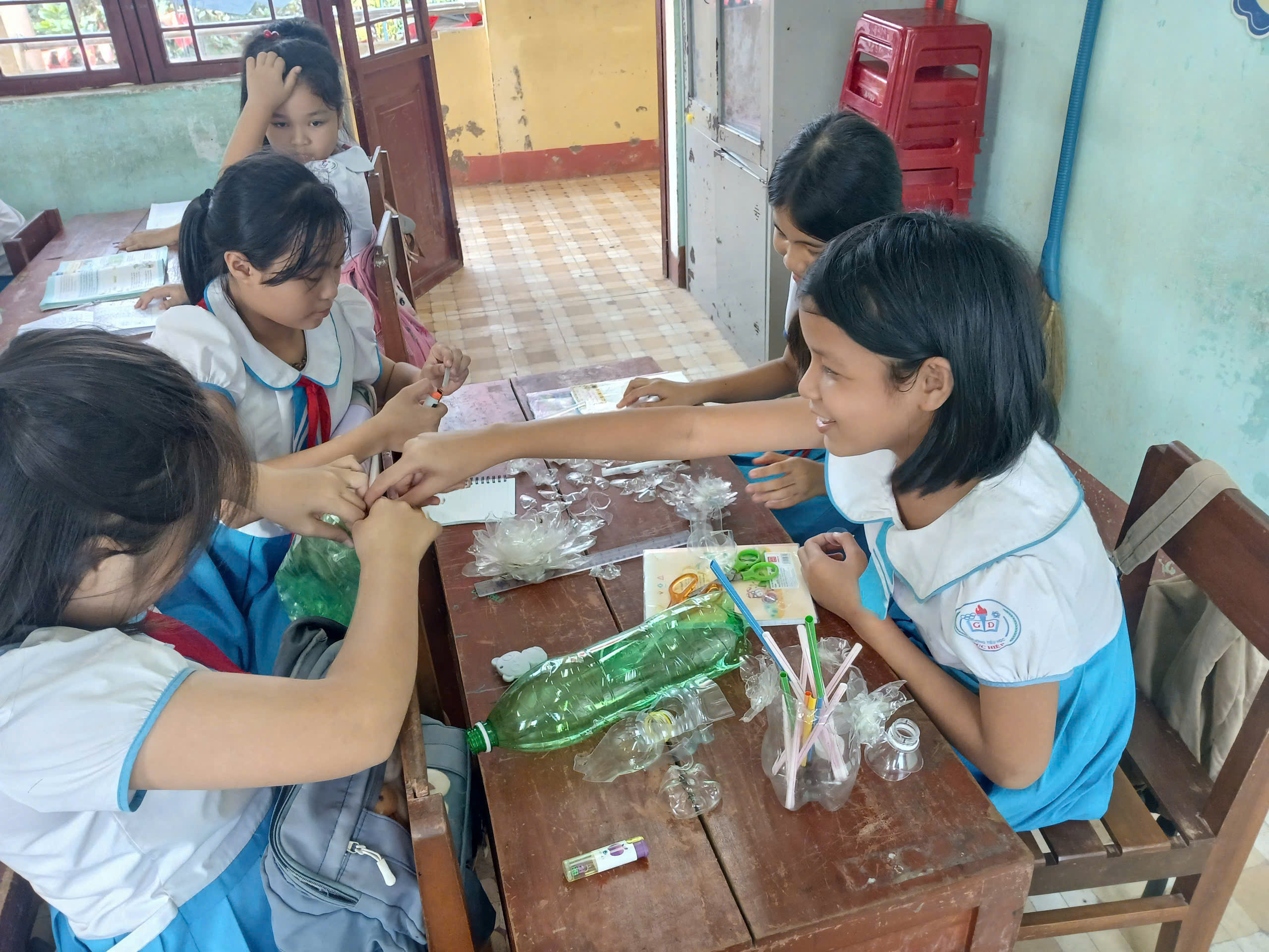 Mỗi lớp tự chuẩn bị nguyên liệu, chủ động thiết kế và hoàn thiện tác phẩm.
