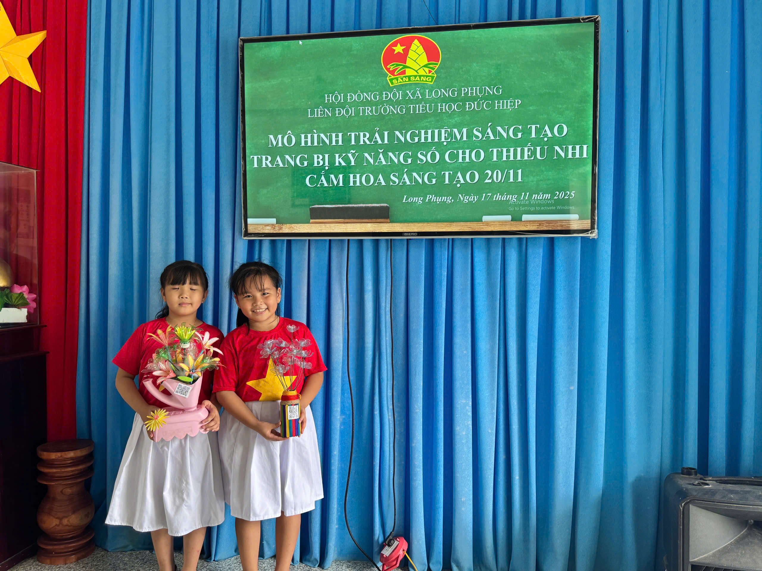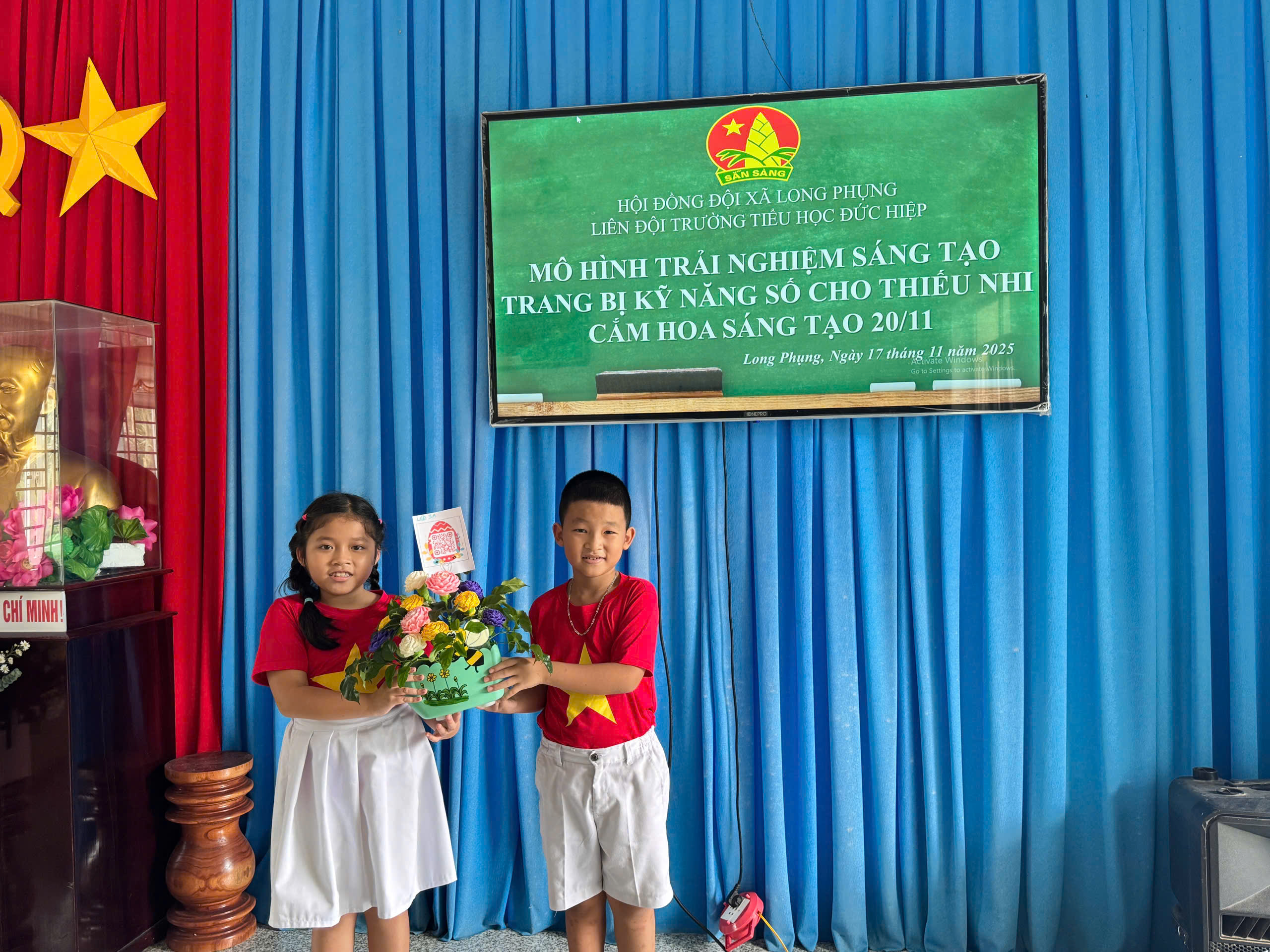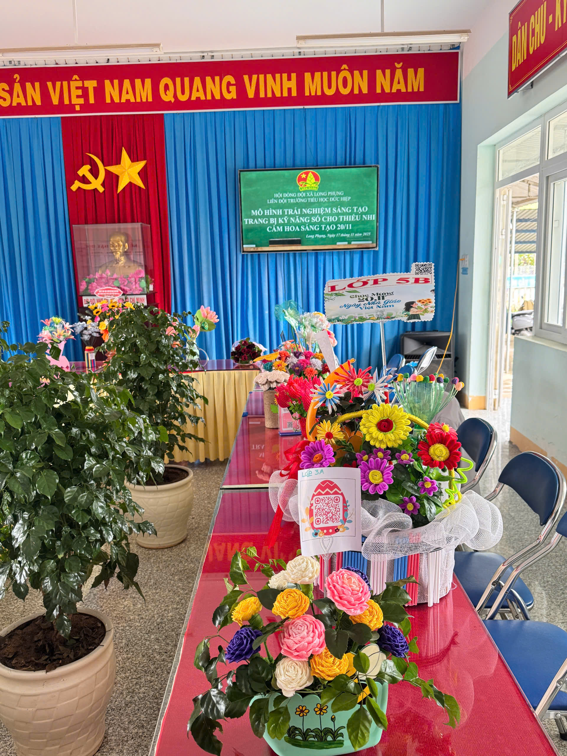 Hòa trong không khí cả nước hướng về Ngày Nhà giáo Việt Nam 20/11, Liên đội Trường Tiểu học Đức Hiệp đã tổ chức Mô hình trải nghiệm sáng tạo – Trang bị kỹ năng số cho thiếu nhi, kết hợp với Phần thi cắm hoa sáng tạo dành cho học sinh các khối lớp. Hoạt động diễn ra sôi nổi, là sân chơi bổ ích giúp học sinh được thể hiện tài năng, rèn luyện kỹ năng mềm và ứng dụng công nghệ vào học tập.